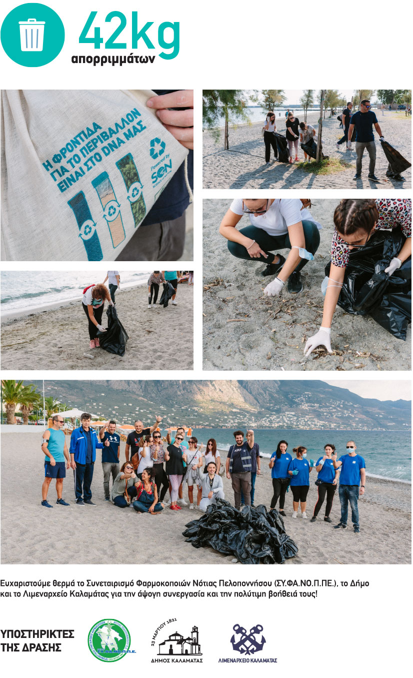 Σε συνεργασία με τον Δήμο Καλαμάτας, την Ελληνική Εταιρεία Αξιοποίησης Ανακύκλωσης και τον ΣΥ.ΦΑ.ΝΟ.Π.ΠΕ, πραγματοποιήθηκε καθαρισμός της παραλιακής ζώνης της Δυτικής Καλαμάτας.