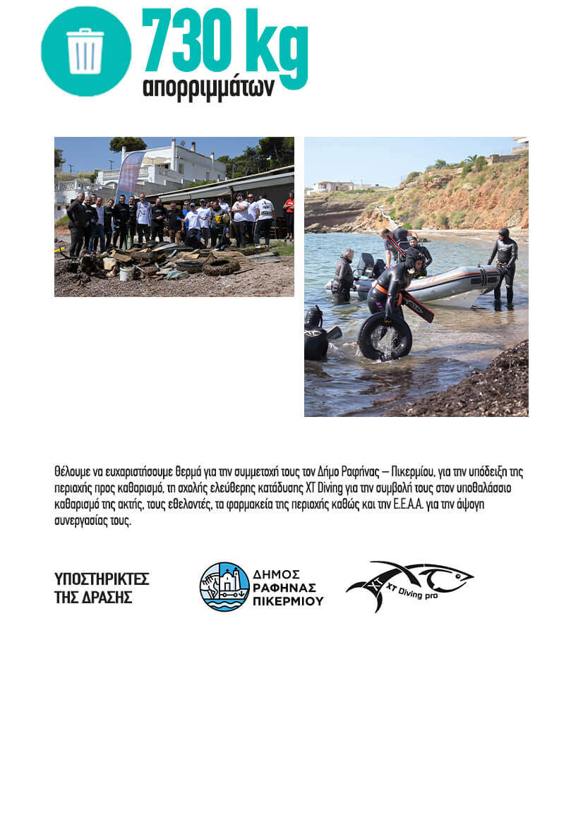 Την Κυριακή 29 Μαΐου, πραγματοποιήσαμε παράκτιο και υποβρύχιο καθαρισμό στην παραλία της Ραφήνας, από την Αργυρά ακτή, έως το Κόκκινο Λιμανάκι.