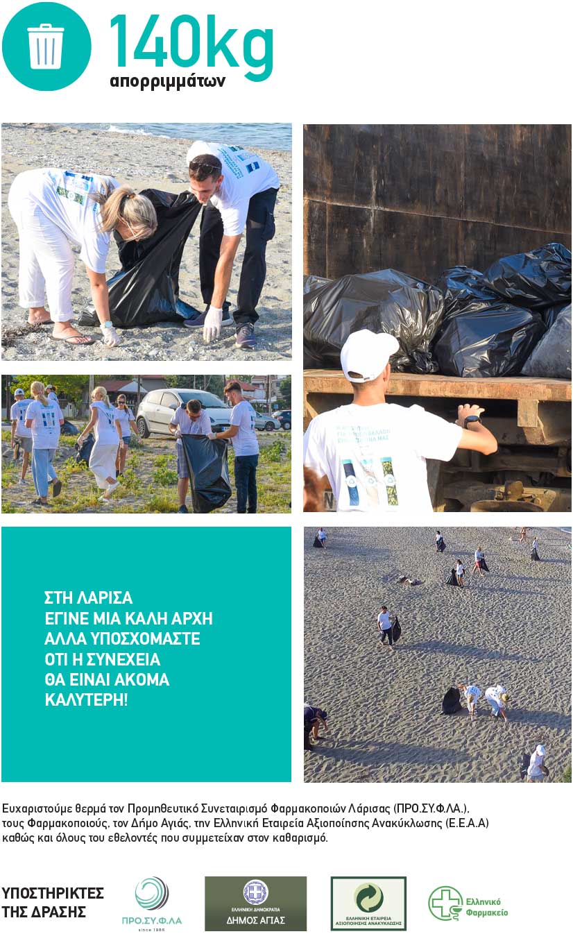Η 1η δράση μας είναι γεγονός! Στις 29 Ιουλίου βρεθήκαμε στη περιοχή της Λάρισας και πραγματοποιήσαμε παράκτιους καθαρισμούς στις παραλίες Στόμιο και Κάτω Σωτηρίτσα – Αγιόκαμπο. Σε ένα εξαιρετικά ευχάριστο κλίμα με άψογη συνεργασία και τρομερή προσήλωση, συλλέξαμε συνολικά 140kg απορριμμάτων! Ένα εντυπωσιακό αποτέλεσμα που μας γέμισε χαμόγελα και δύναμη για τη συνέχεια. Τα απορρίμματα που συλλέχθηκαν, βρίσκονται ήδη στο στάδιο της διαλογής και της ανακύκλωσης! Είμαστε ιδιαίτερα χαρούμενοι για την τεράστια επιτυχία των πρώτων καθαρισμών και πραγματικά ευγνώμονες σε όλους όσους μας στήριξαν.