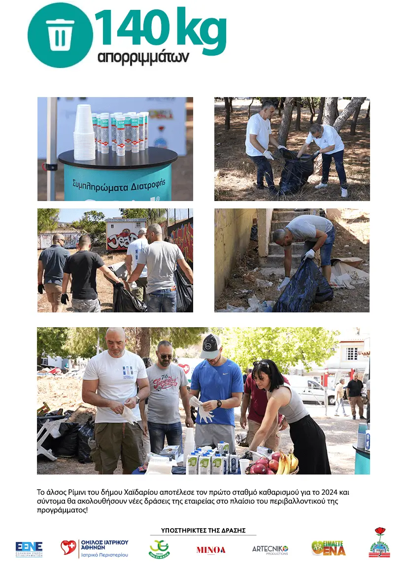 Με τη συνεργασία της Ελληνικής Εταιρείας Αξιοποίησης Ανακύκλωσης, του Δήμου Χαϊδαρίου και με την υποστήριξη σημαντικών φορέων και επιχειρήσεων (Ελληνική Ένωση Επιχειρηματιών, Artecniko, Minoa Water, ΠΡΟΣΥΦΑΠΕ, Όμιλος Ιατρικού Αθηνών, κοινωνική οργάνωση «Είμαστε 1»), πραγματοποιήθηκε εκτεταμένος καθαρισμός στο Άλσος Ρίμινι.